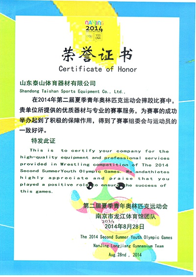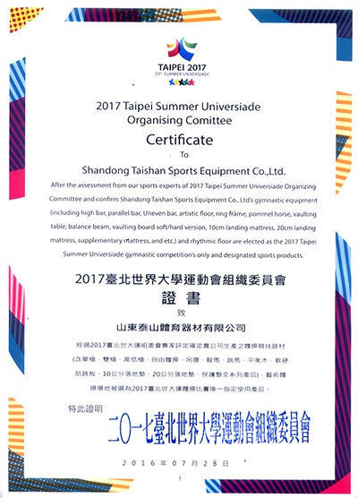 2019年那不勒斯大學(xué)生運動會榮譽(yù)證書